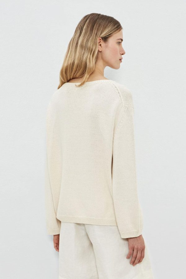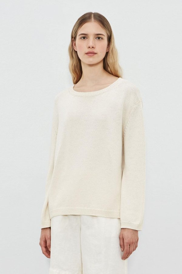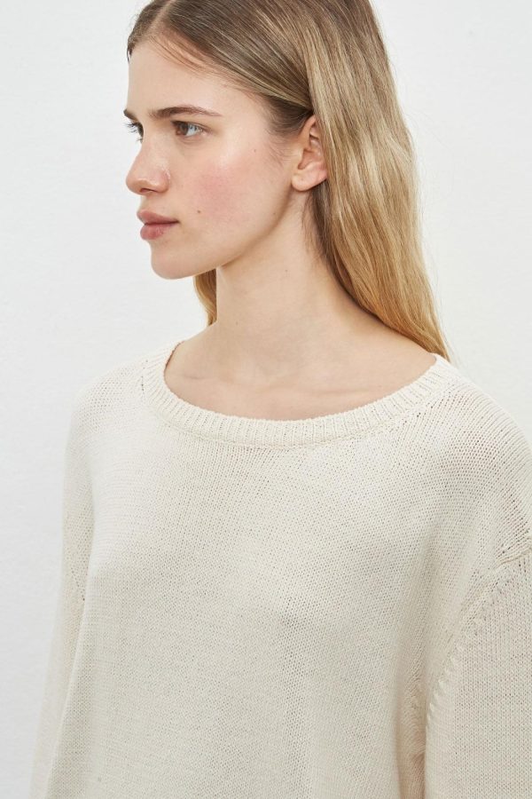Comfort-fit wide crew-neck sweater with natural thistles, dropped shoulders, flat ribbed edges, and bell-shaped sleeves.