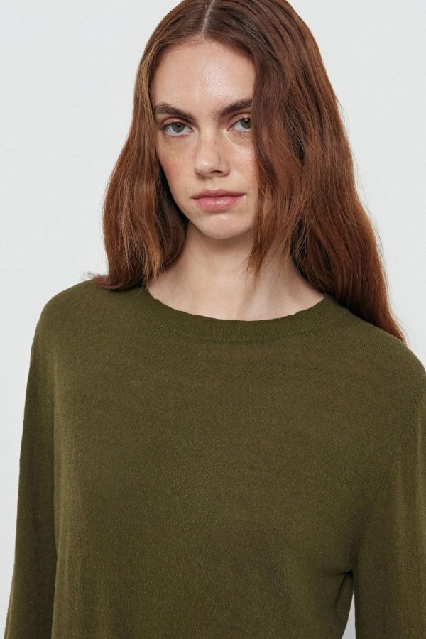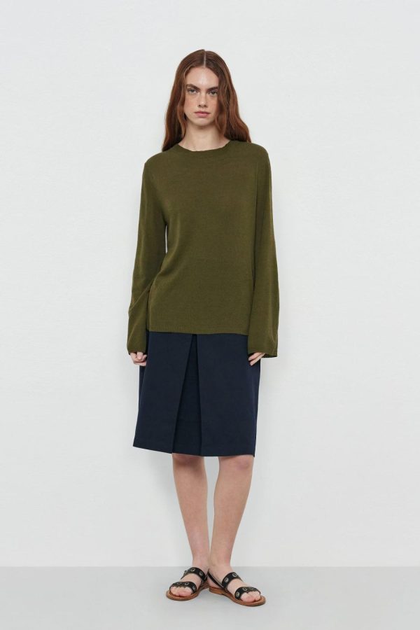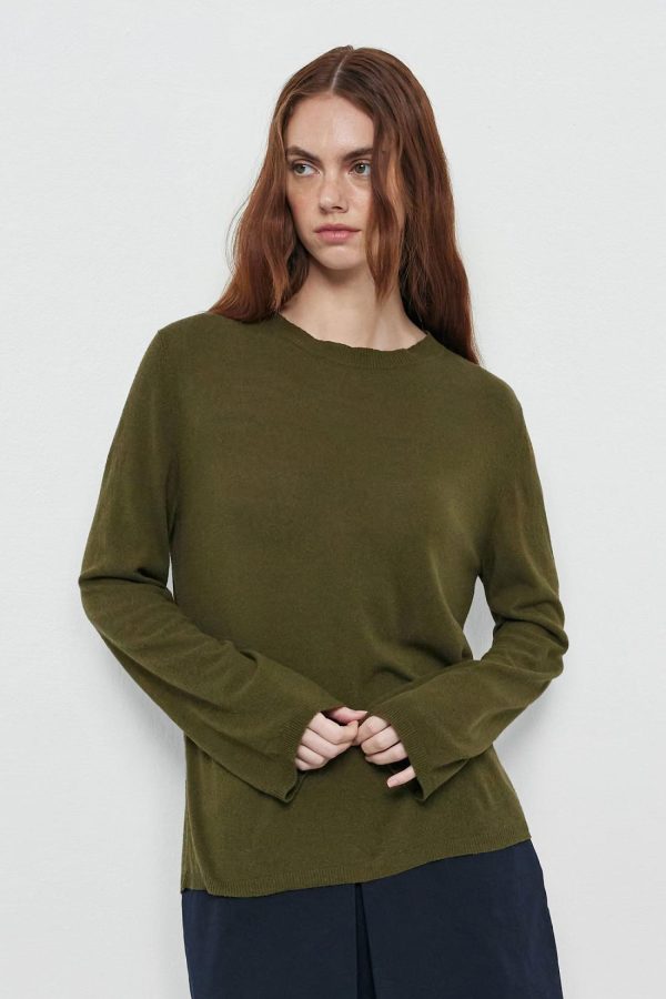 Regular-fit boat-neck sweater with flat ribbed edges and bell-shaped sleeves.
